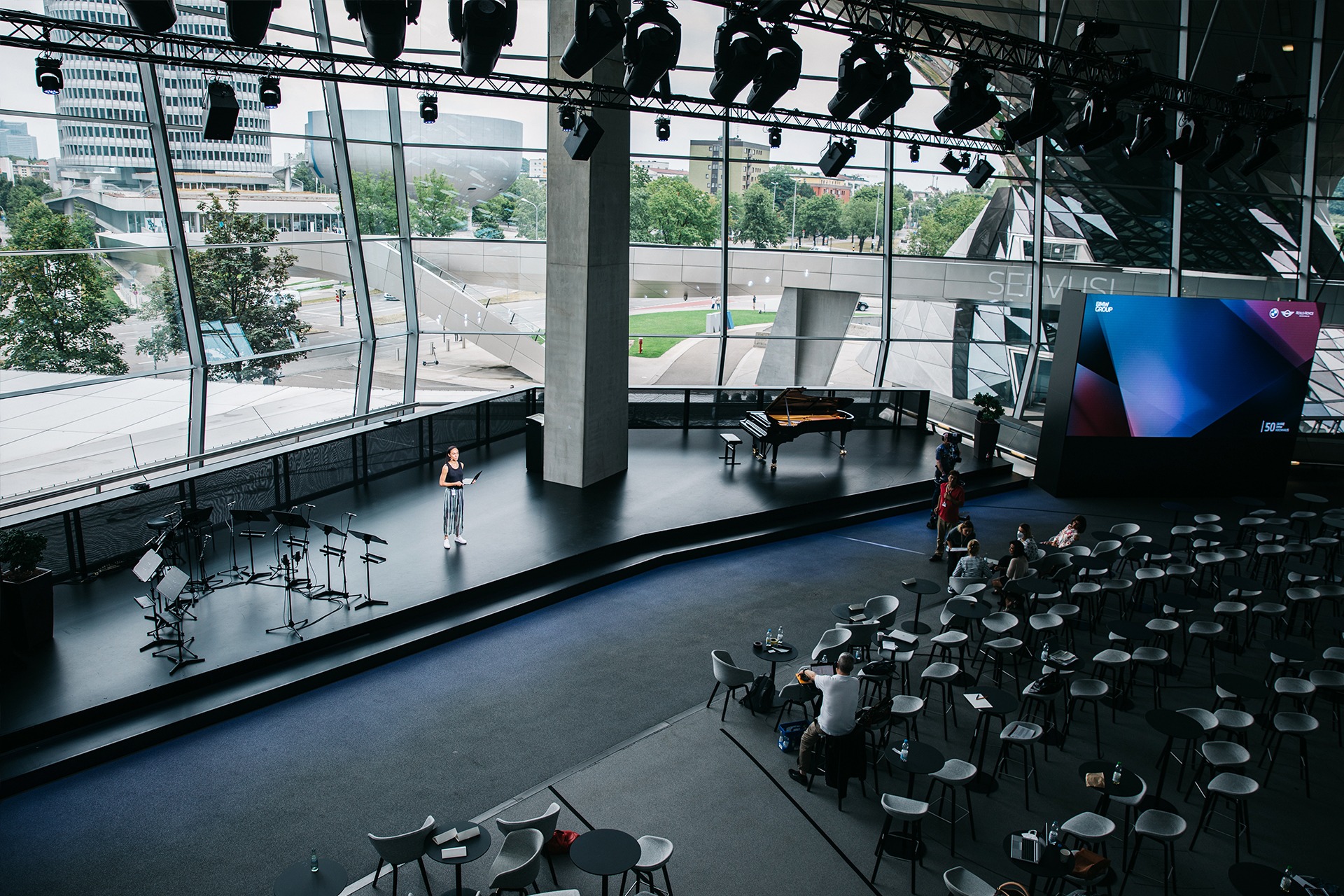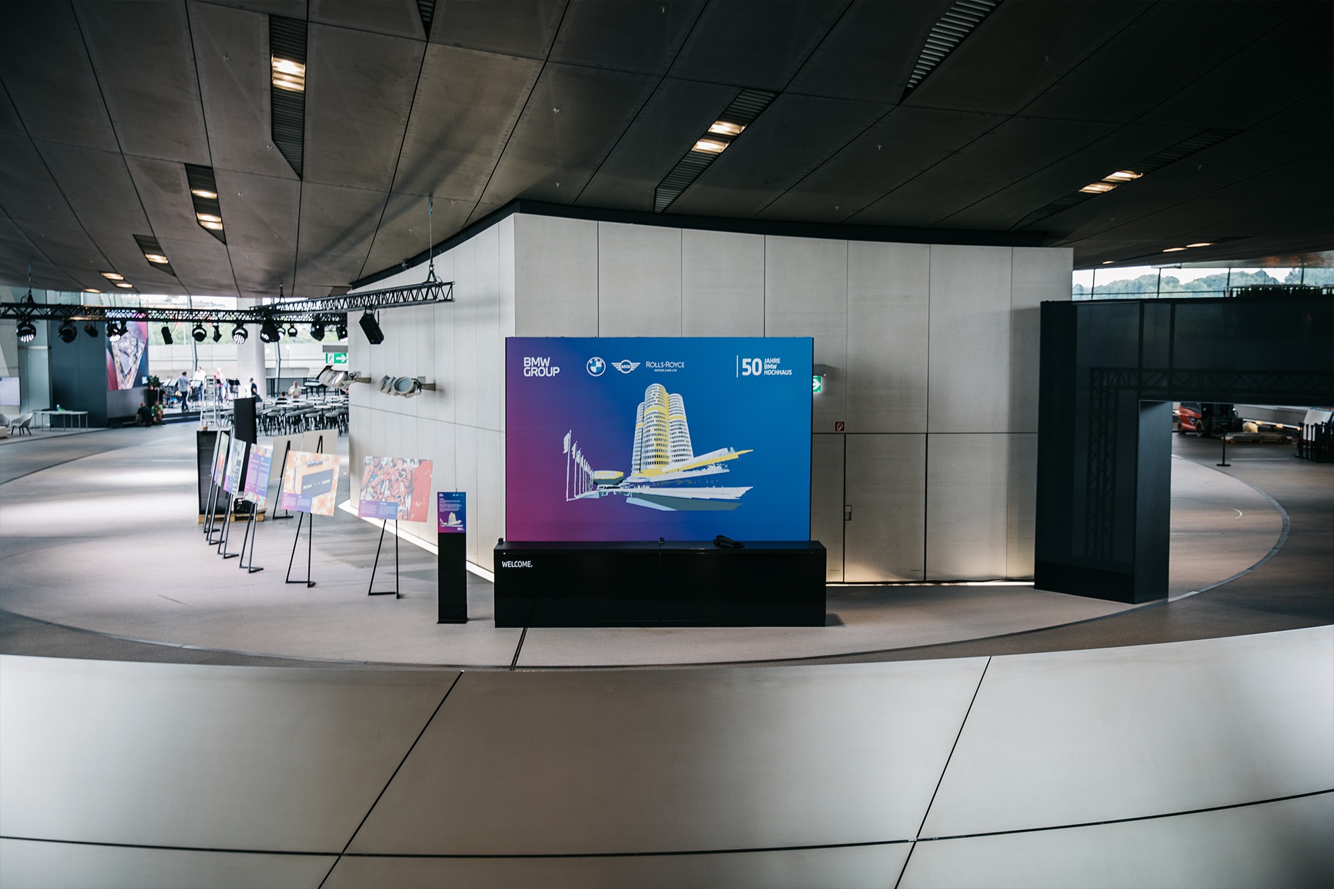 Im Sommer 2022 feierte die BMW Group das 50-jährige Jubiläum ihres ikonischen BMW-Vierzylinder-Hochhauses – einem der bekanntesten Wahrzeichen Münchens und dem Hauptsitz der BMW AG. Dieses architektonische Meisterwerk, entworfen von Karl Schwanzer im Jahr 1972, beeindruckt mit seiner futuristischen Form, die den Querschnitt eines Vierzylindermotors symbolisiert. Mit einer Höhe von 101 Metern gilt das Gebäude als ein herausragendes Beispiel moderner Ingenieurskunst und Architektur. Für dieses bedeutende Jubiläum übernahm die e.w.enture GmbH die Ausführungsplanung sowie die bauliche Umsetzung des Bühnen- und Ausstellungsbereichs auf knapp 2.000 m² in der BMW Welt München. Die Ausstellung verband eindrucksvoll historische Einblicke in die Entstehung des Vierzylinder-Hochhauses mit modernen Inszenierungen, die BMWs Visionen für die Zukunft präsentierten. Unser Team kümmerte sich um die gesamte bauliche Umsetzung und Ausstattung der Veranstaltung, sodass der Raum die Historie und Innovationskraft von BMW gleichermaßen würdigte. Das Event wurde durch eine hochkarätige Feier mit Gästen aus Politik, Wirtschaft und Gesellschaft abgerundet, die die Bedeutung des BMW-Vierzylinders als Symbol für Innovation und Fortschritt in der Automobilbranche hervorhoben.