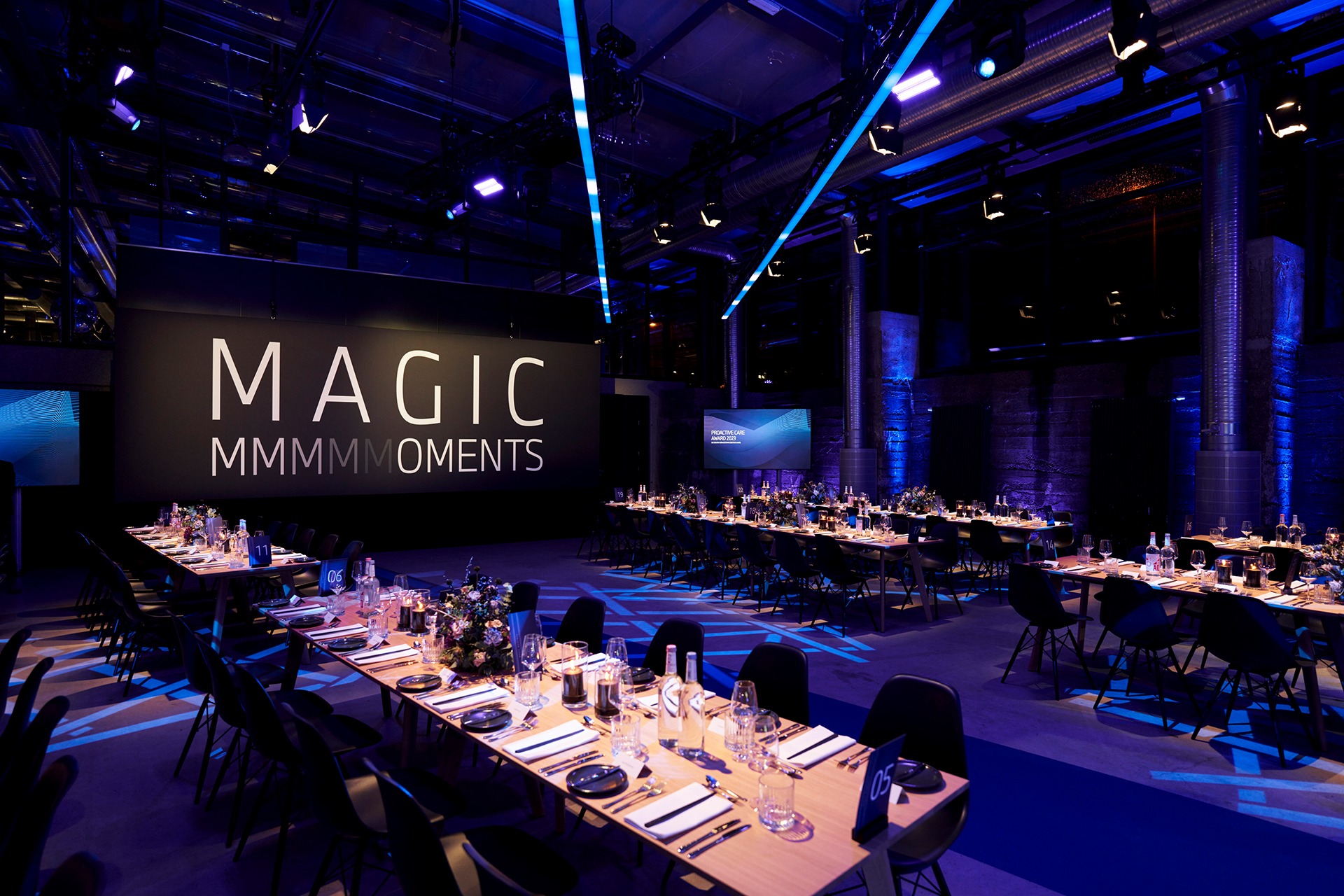 Im Dezember 2023 ehrte die BMW Group Deutschland ihre besten Handelspartner mit dem renommierten Proactive Care Award. Insgesamt 12 Servicebetriebe aus der deutschen Handelsorganisation wurden für ihre herausragende Leistung im vergangenen Geschäftsjahr ausgezeichnet. Die feierliche Preisverleihung fand in der einzigartigen Location des Kohlebunkers in München statt, eingerahmt von einem exklusiven Galadinner. Als verantwortliches Unternehmen für die Umsetzung waren wir von der e.w.enture GmbH für den Bühnenbau, das gesamte Bühnenbild, die bauliche Ausarbeitung der Empfangssituation sowie für das Loungemobiliar und das Dinnermobiliar verantwortlich. Durch unsere Arbeit wurde ein stilvoller Rahmen geschaffen, der die Bedeutung des Events unterstrich und die Auszeichnung der Handelspartner würdigte.