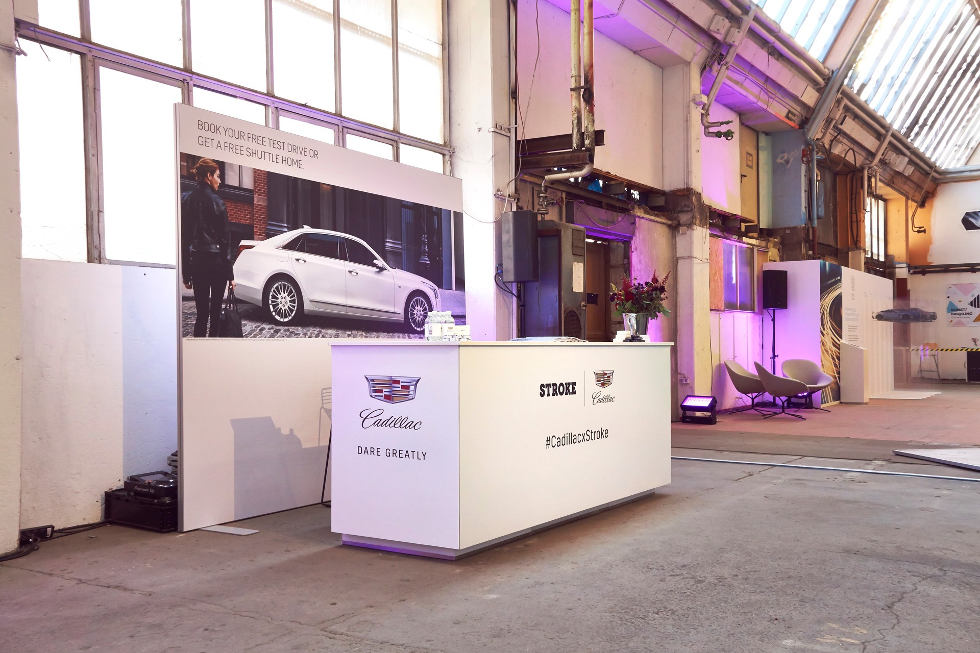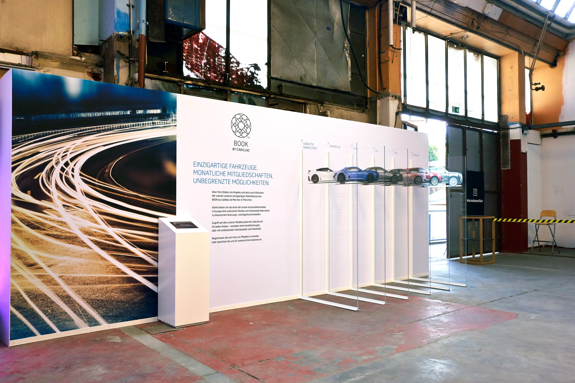 „Cadillac auf der Stroke Art Fair – Kunstvolle Fahrzeugpräsentation der Extraklasse!“. Für Cadillac, den Partner der Stroke Art Fair, der führenden Messe für junge zeitgenössische Kunst in Deutschland, setzten wir die Präsentation aktueller Fahrzeuge als Teil der Ausstellung um. Die Fahrzeuge wurden dabei nicht nur ausgestellt, sondern in die Kunstlandschaft der Messe eingebunden, was die innovative Verbindung zwischen Automobiltechnik und moderner Kunst eindrucksvoll zur Geltung brachte. Unser Team übernahm die komplette Umsetzung des Projekts, einschließlich Ausführungsplanung, Logistik und dem gesamten Auf- und Abbau vor Ort. Mit viel Feingefühl integrierten wir die Fahrzeuge in die kreative Atmosphäre der Messe und sorgten dafür, dass die Präsentation den Besuchern ein einzigartiges Erlebnis bot.