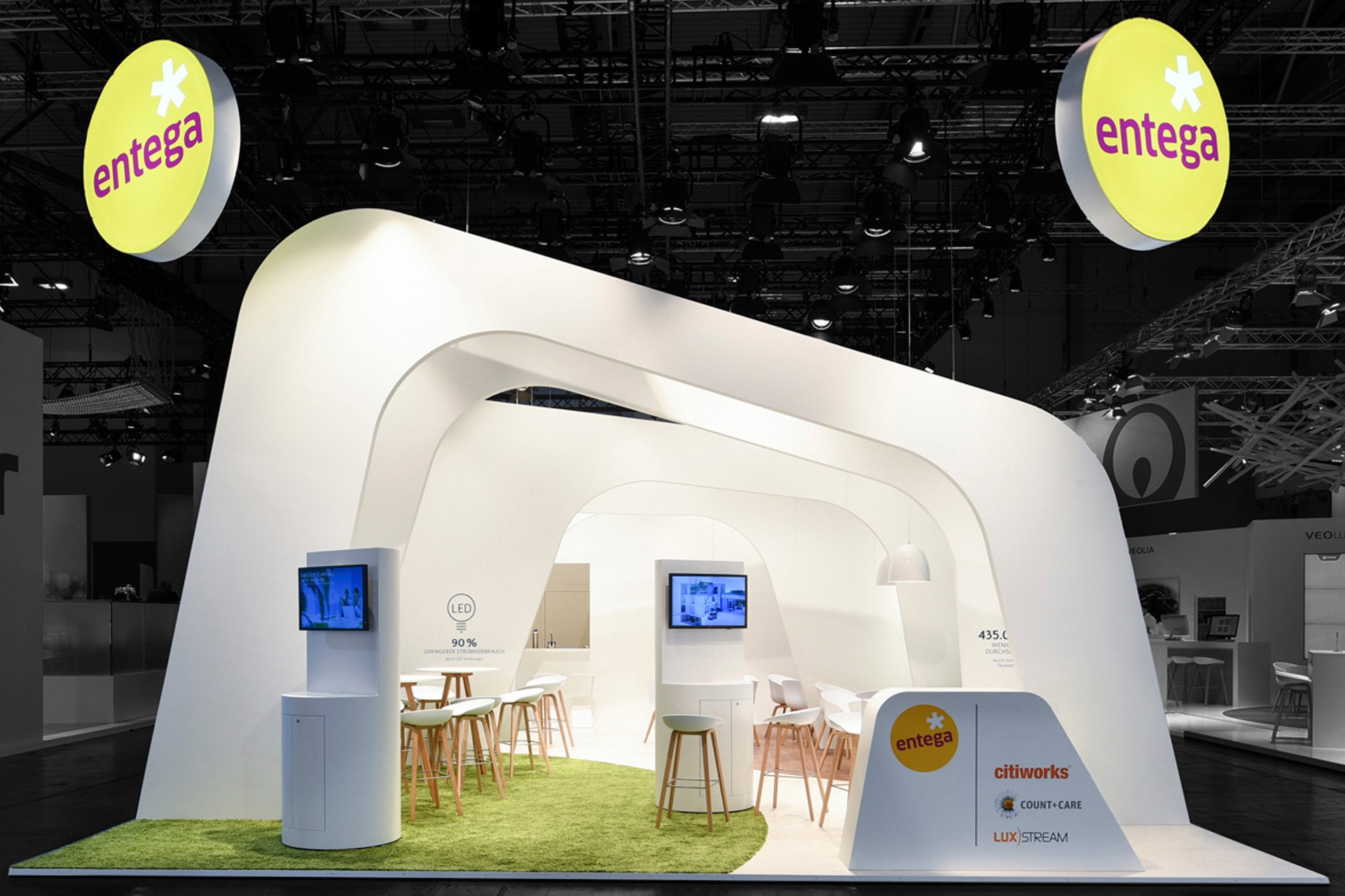 Mit diesem innovativen und technisch anspruchsvollen Standdesign konnten wir erneut überzeugen. Die elegante Verbindung aus Design, Funktionalität und Präzision macht den neuen Entega-Messestand zu einem echten Blickfang und unterstreicht die zukunftsorientierte Ausrichtung des Unternehmens.