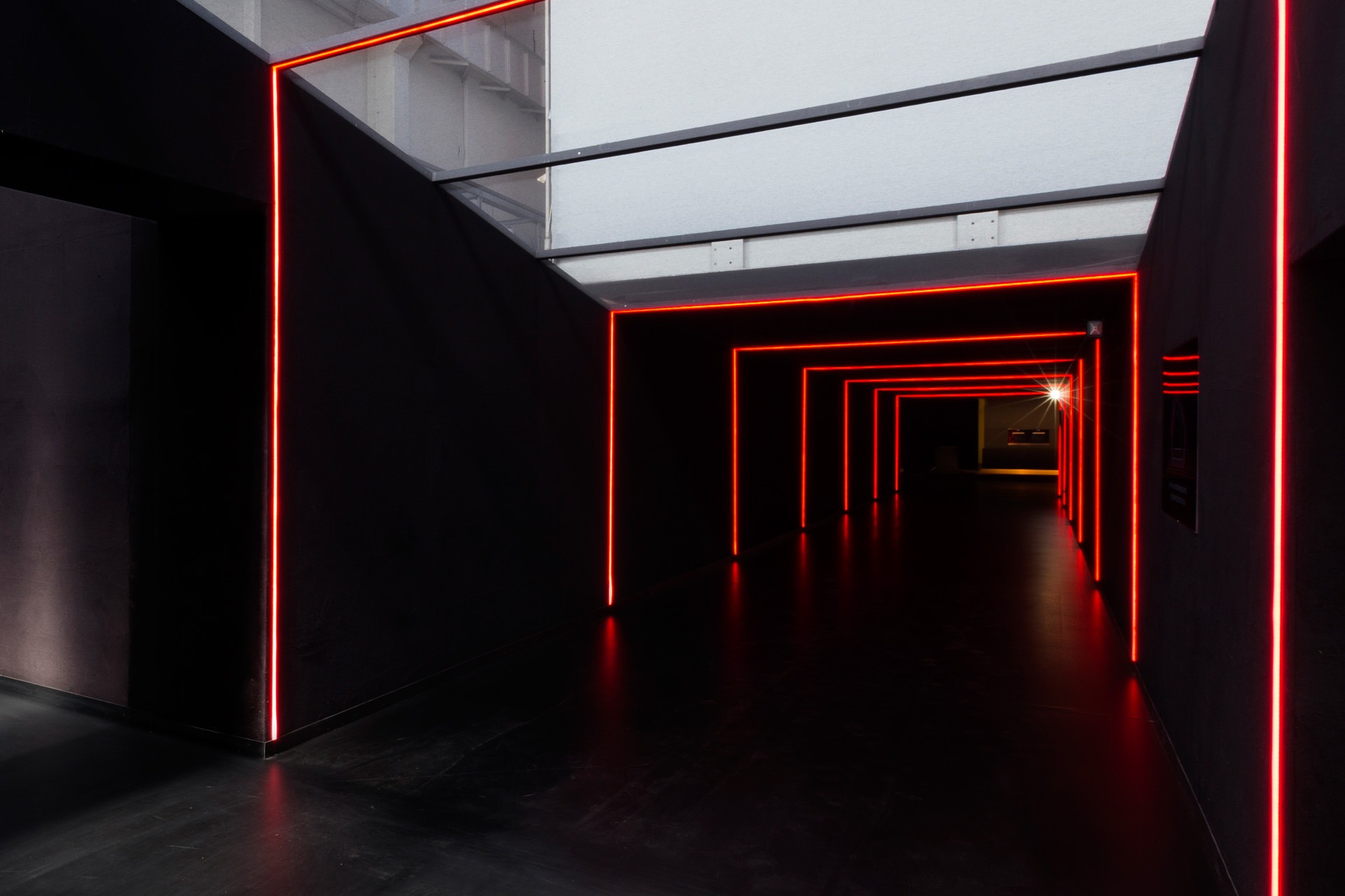 - Die Wände finalisierten wir mit roten LED-Schläuchen, die als Akzente den Raum zum Leben brachten.