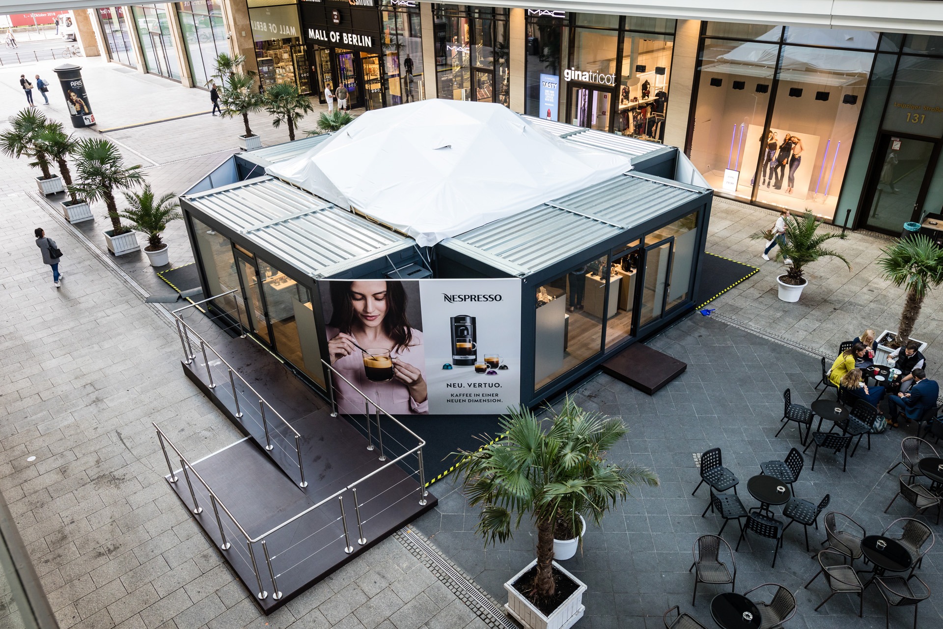 Nespresso Tasting Tour – Container-Roadshow für ein einzigartiges Markenerlebnis. Für die Nespresso Tasting Tour, eine Container-Roadshow durch sieben deutsche Großstädte, übernahmen wir die Ausführungsplanung, das Projektmanagement sowie den Bau und Ausbau der Containeranlagen. In Berlin, Hannover, Hamburg, Frankfurt, Köln, Düsseldorf und München sorgten wir für die gesamte Roadshow-Logistik und organisierten den reibungslosen Auf- und Abbau der Anlagen an jedem Standort. Mit präziser Planung und effizienter Durchführung integrierten wir die 120 m² großen Eventflächen nahtlos in die Nespresso Markenwelt. Vom ersten Entwurf bis hin zum finalen Eventaufbau haben wir das Projekt mit höchster Sorgfalt umgesetzt, sodass die Besucher in eine einzigartige Nespresso-Erlebniswelt eintauchen konnten. Werfen Sie einen Blick in die Bildergalerie und sehen Sie, wie wir die Nespresso Tasting Tour durch innovativen Messebau und präzise Logistik in ein unvergessliches Erlebnis verwandelt haben!