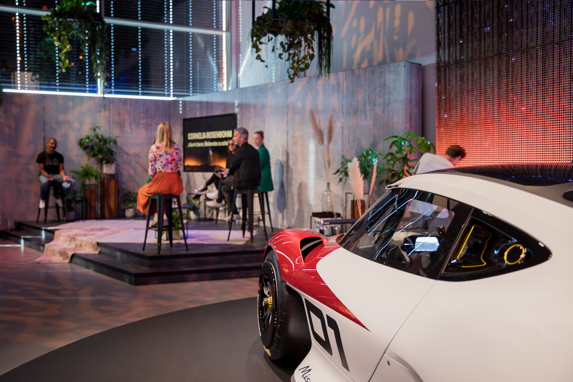 Für die Abendveranstaltungen während der IAA, fernab des Messetrubels, realisierte Porsche Deutschland eine exklusive Lounge über den Dächern von München. In der Location „Hoch5“ mit mehr als 1.000 m² Fläche, verteilt auf zwei Etagen und einer Dachterrasse mit Rooftopbar, wurden sowohl Weltpremieren als auch die „Dreamers Night“ gefeiert. Die e.w.enture GmbH übernahm in gewohnter hoher Ausführungsqualität die Verantwortung für den Messe- und Eventbau. Zu unseren Aufgaben gehörten der Bau einer 22 Meter langen, modernen Bar mit spektakulärer Deckenkonstruktion sowie mehrere maßgeschneiderte Fahrzeugpodeste im Innen- und Außenbereich. Ein besonderes Highlight der Veranstaltung war die Drehbühne, die für die Premiere des Porsche Mission R zum Einsatz kam. Unsere Expertise in der Umsetzung anspruchsvoller Event- und Messebauprojekte trug entscheidend dazu bei, dass diese außergewöhnliche Veranstaltung von Porsche zu einem unvergesslichen Erlebnis für alle Gäste wurde.