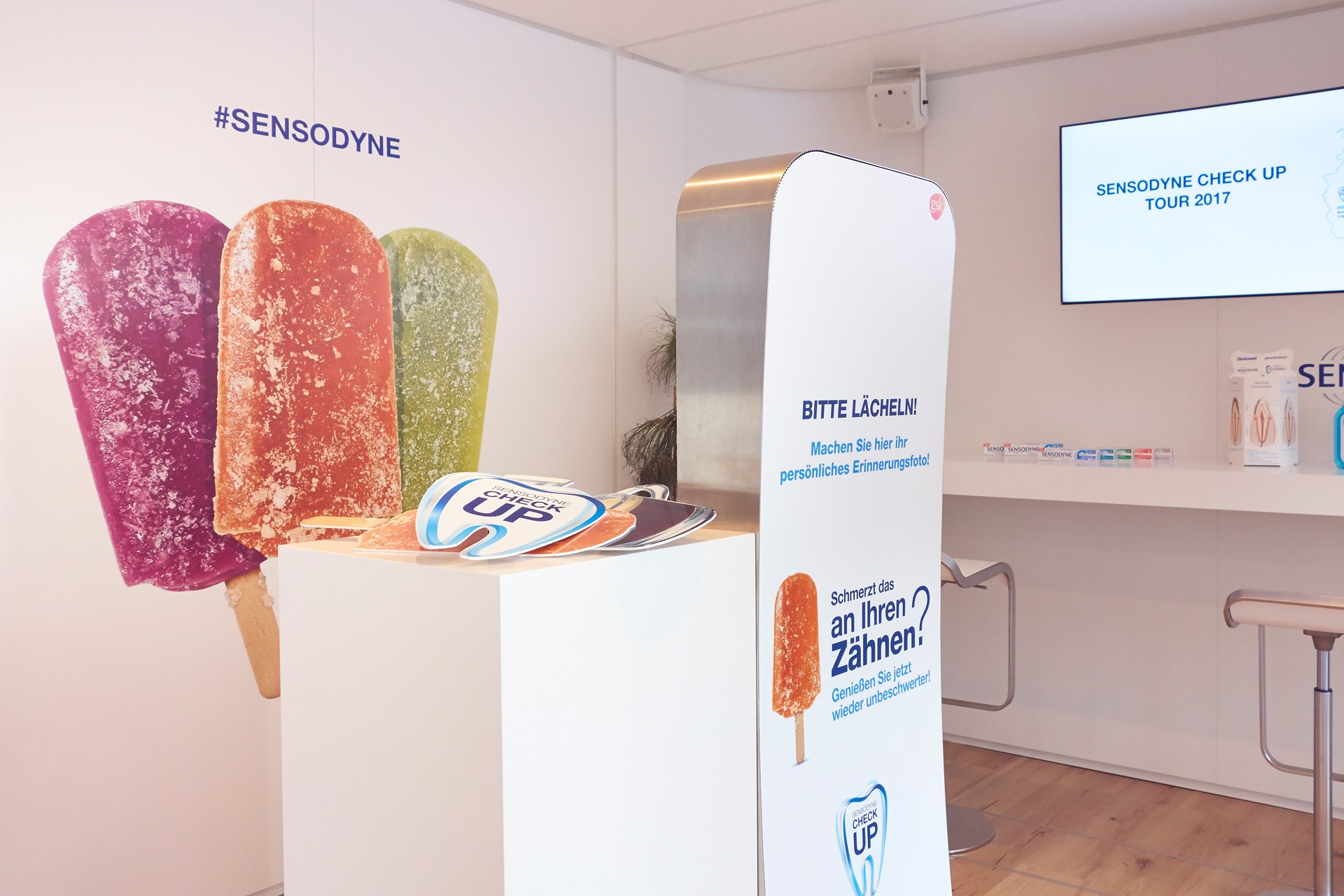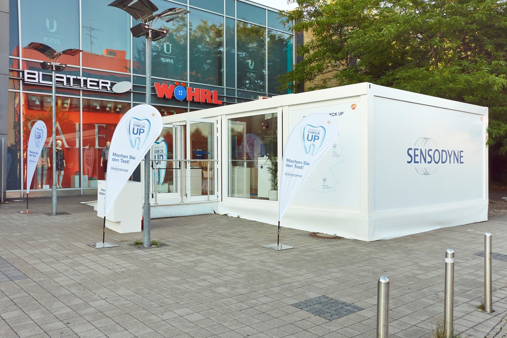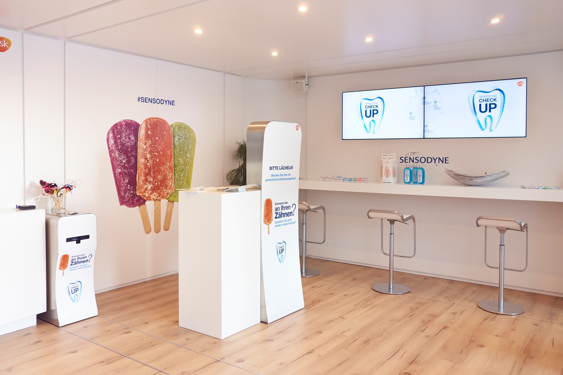 Sensodyne Check-Up Roadshow – Boxenstopp für die Zähne. Im Sommer 2017 tourte die Sensodyne Check-Up Roadshow durch München, Hamburg, Berlin und Düsseldorf und gab den Besuchern die Möglichkeit, ihre Zahngesundheit in den Mittelpunkt zu stellen. Für dieses Event waren wir verantwortlich für die Planung, den Bau und den Ausbau der vier hochwertigen, modular konstruierten Container, die jeweils im charakteristischen Marken-Look und -Feel gestaltet wurden. Die Container, teils verglast und mit modernem Design, schufen eine einladende Atmosphäre und ermöglichten eine professionelle Zahn-Check-up-Beratung. Wir sorgten für die komplette Umsetzung – von der Konstruktion über den Transport bis hin zum Aufbau in jeder Stadt. So wurde die Roadshow zu einem vollen Erfolg, der nicht nur die Marke Sensodyne stärkte, sondern den Teilnehmern auch eine praktische und informative Erfahrung bot. Erleben Sie die Highlights der Roadshow in unserer Bildergalerie und sehen Sie, wie wir das Event von der Planung bis zum perfekten Boxenstopp für die Zähne realisiert haben!