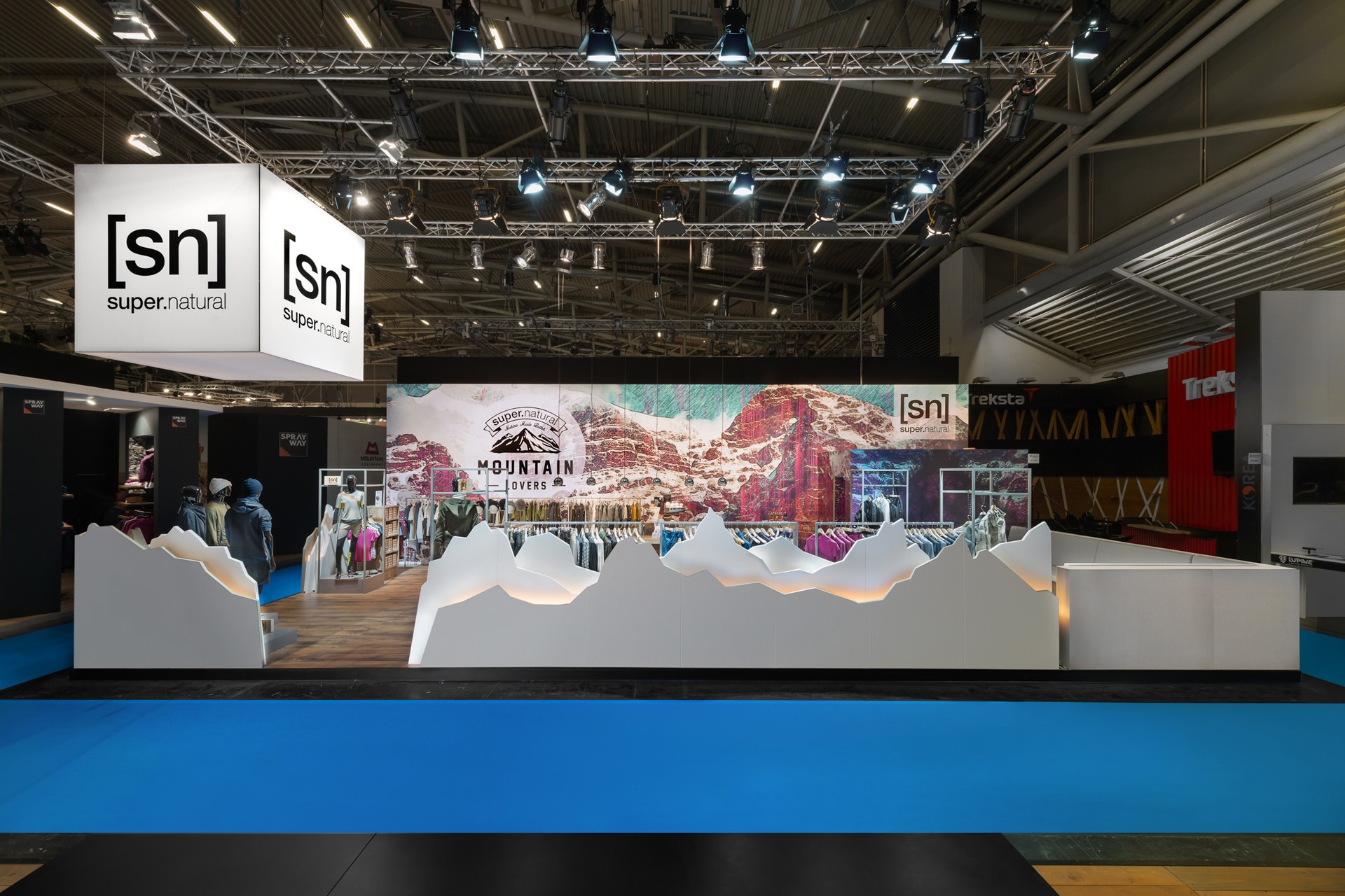 Unter dem Motto „Mountain Lovers“ brachte e.w.enture für das Sport-Fashion-Label Super.Natural die Berge in die Messehalle. Für den 90 m² großen Messestand auf der ISPO München entwickelten wir ein Konzept, das die Naturverbundenheit der Marke perfekt widerspiegelt: Eine dreidimensionale, hinterleuchtete Bergsilhouette rahmte den gesamten Stand ein und zog die Blicke der Besucher auf sich. Wir realisierten das Projekt von der ersten Idee bis zur finalen Umsetzung. Dabei waren wir verantwortlich für das Kreativkonzept, die Ausführungsplanung, das Projektmanagement sowie den Aufbau. Mit diesem stimmigen Design schufen wir ein unvergessliches Markenerlebnis, das den Charakter von Super.Natural eindrucksvoll unterstrich.